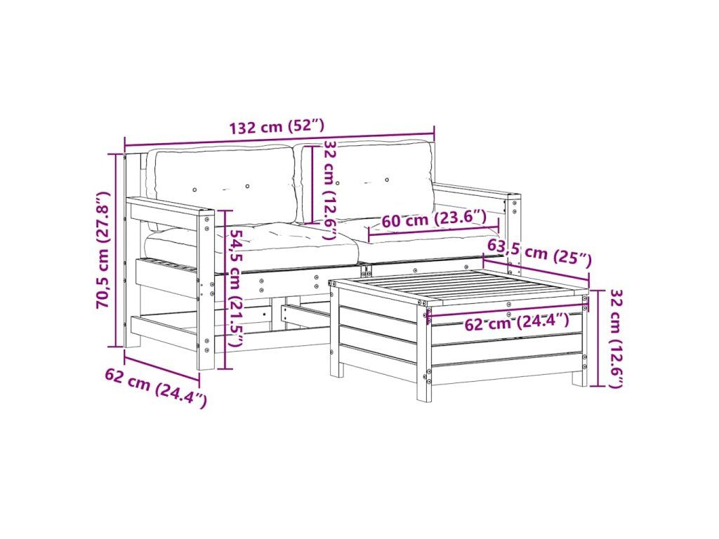 - Rozmery záhradnej rohovej pohovky: 66 x 62 x 70,5 cm (D x Š x V)