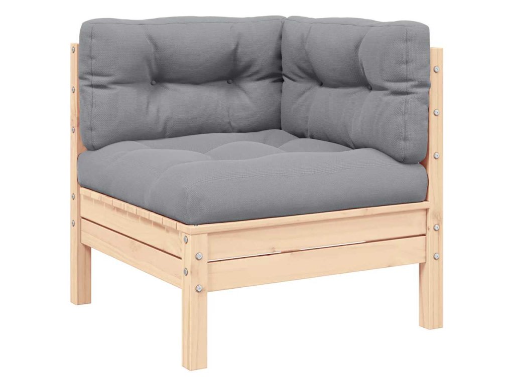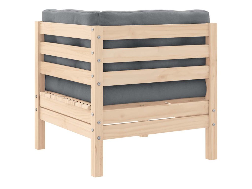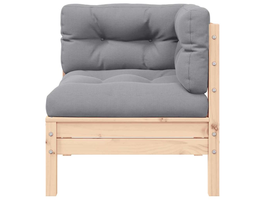 Terasová sedacia súprava je vyrobená z masívneho borovicového dreva, vďaka čomu je robustná a stabilná. Vankúše jej dodávajú dodatočné pohodlie. Môžete ju skombinovať s inými modulárnymi segmentmi a vytvoriť si tak svoje vlastné konfigurácie záhradného posedenia!