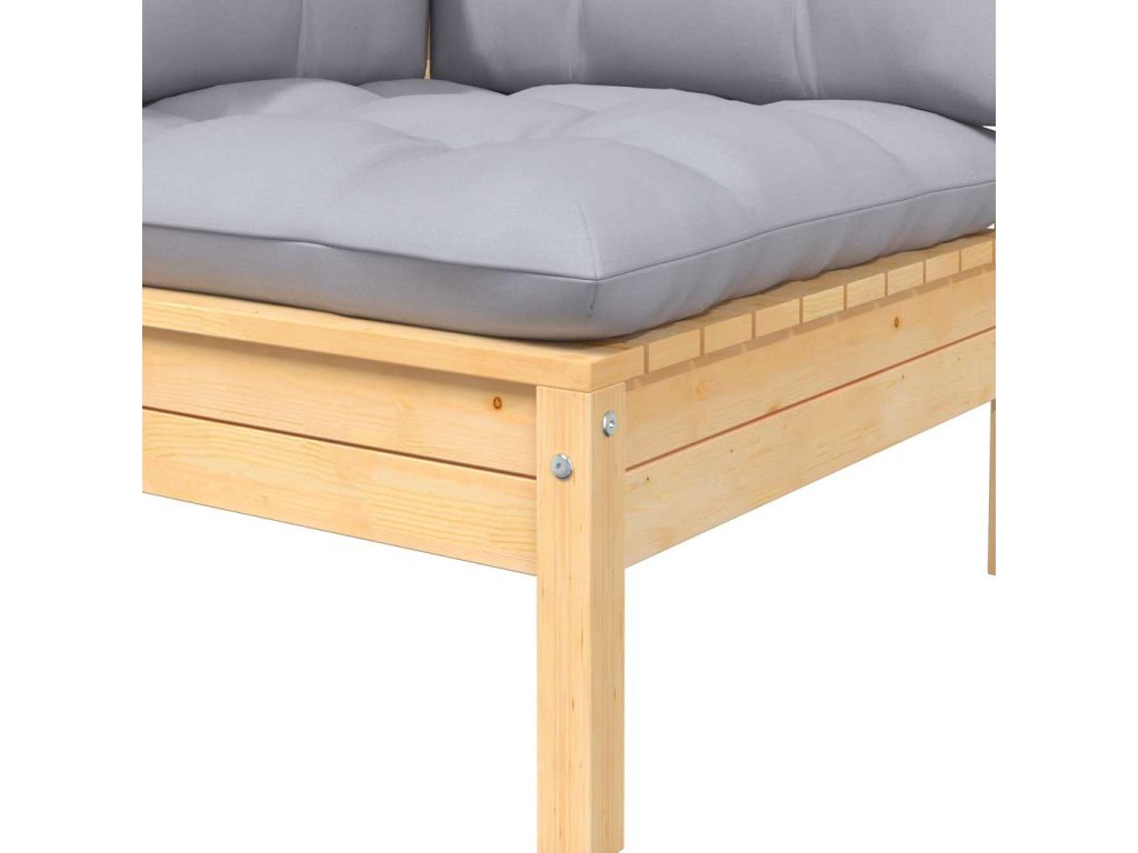 Multidom 3-dielny záhradný sedací set so sivými sedákmi borovicový masív