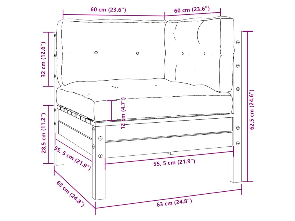 - Rozmery rohovej sedačky: 63,5 x 63,5 x 62,5 cm (Š x H x V)