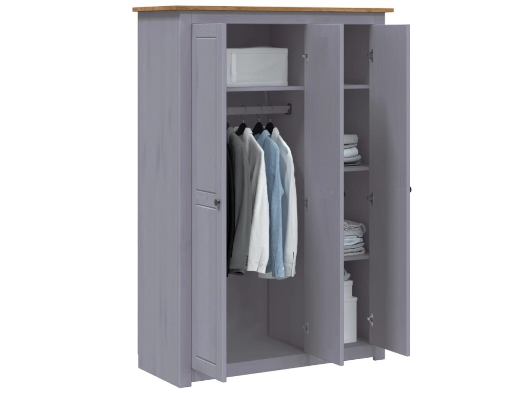 Multidom 3-dverový šatník sivý 118x50x171,5 cm borovicové drevo Panama Range