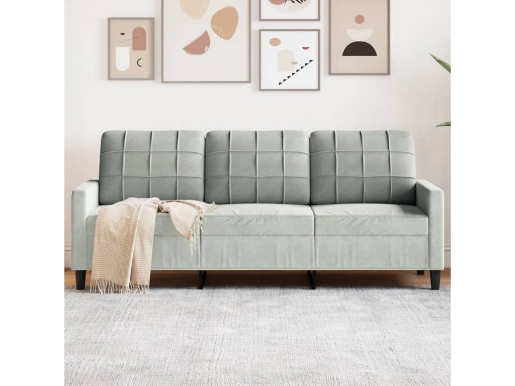 Multidom 3-miestna pohovka, svetlosivá 180 cm, zamat