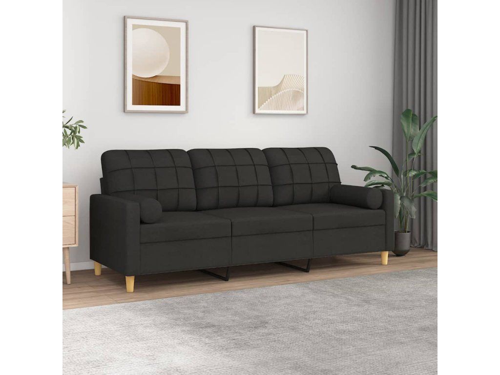 Multidom 3-miestna pohovka s vankúšmi čierna 180 cm látka
