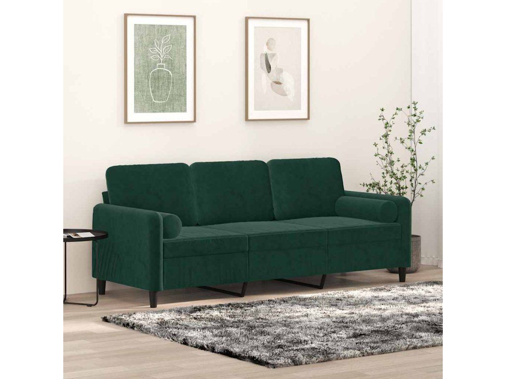 Multidom 3-miestna pohovka s vankúšmi tmavozelená 180 cm zamat