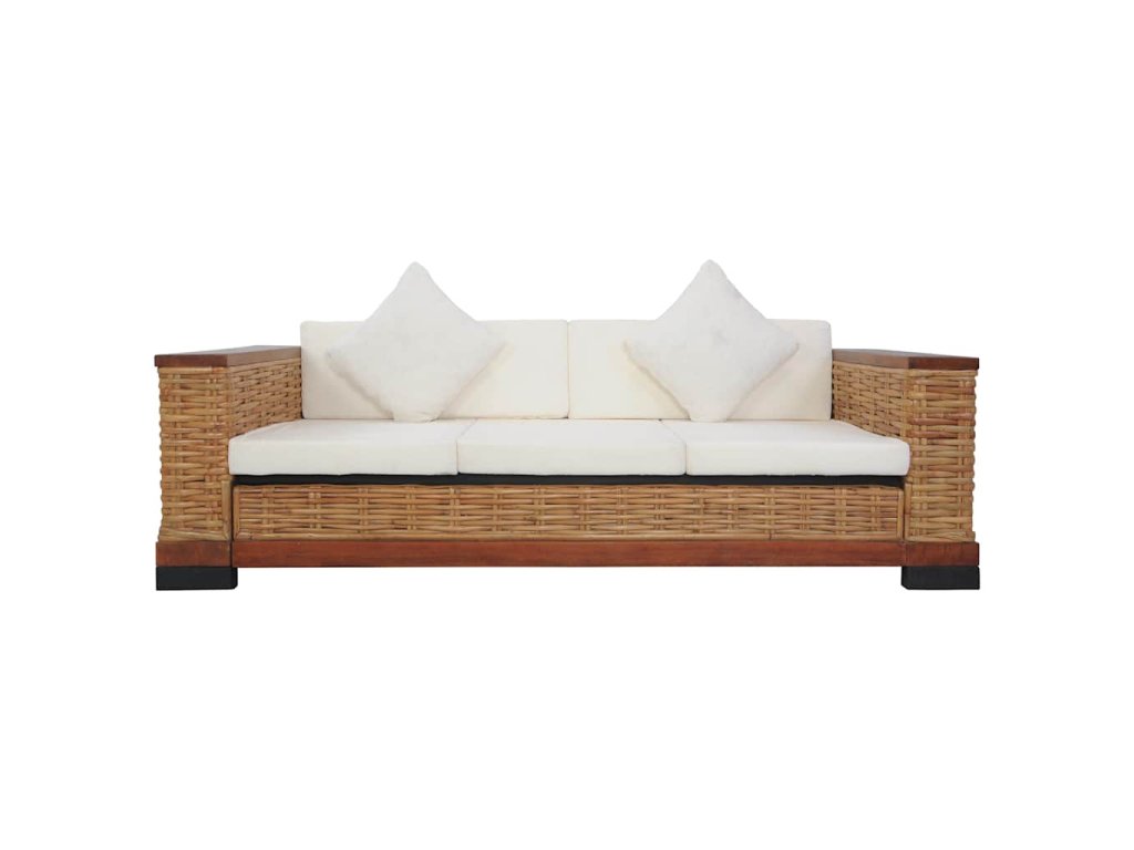 Vďaka materiálu z pravého ratanu sa pohovka jednoducho čistí, je odolná a vhodná na každodenné použitie. Má pevný drevený rám, ktorý je skutočne trvácny a stabilný. Hrubé podsedáky a vankúše sú veľmi pohodlné a vďaka odnímateľným návliečkam sú aj umývateľné. Široké lakťové opierky zaručujú pohodlné sedenie.