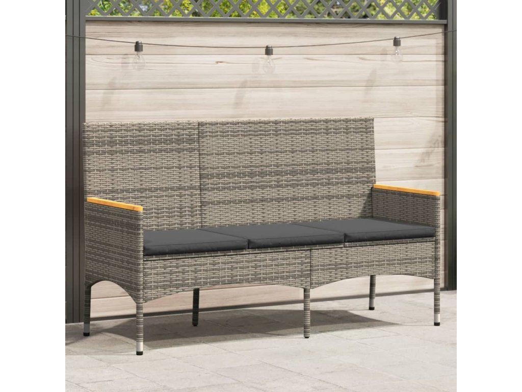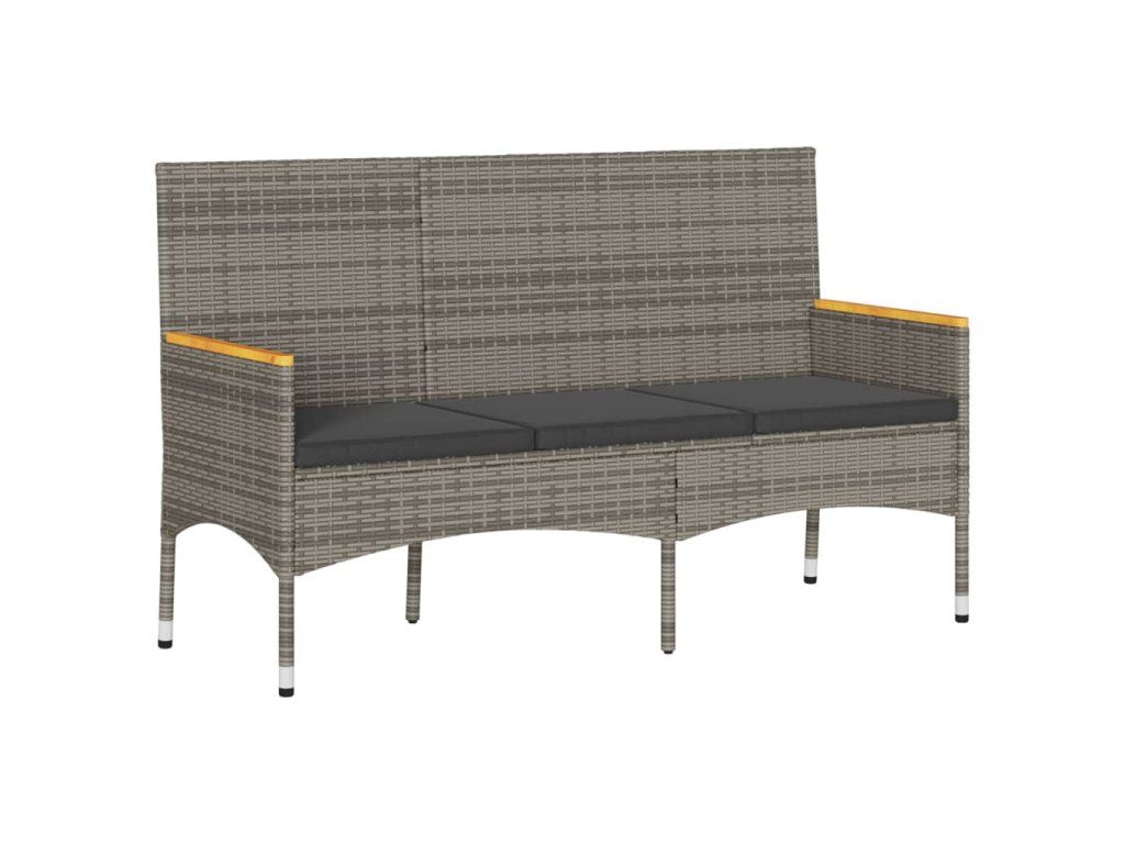 Multidom 3-miestna záhradná lavica s vankúšmi sivá polyratan