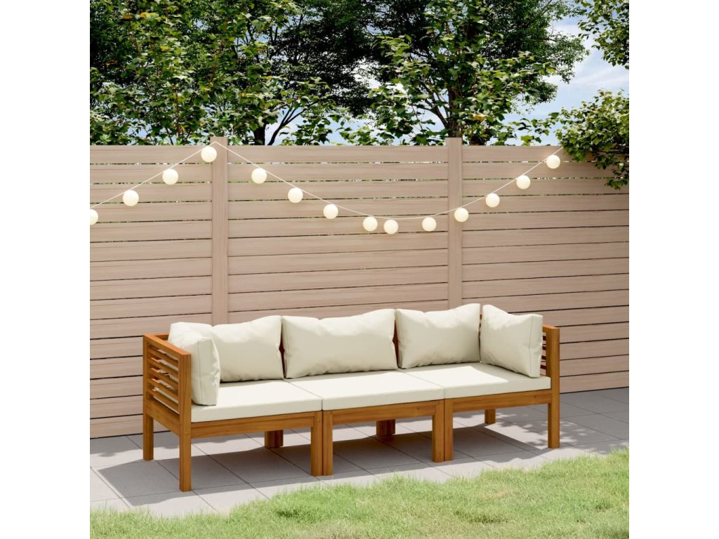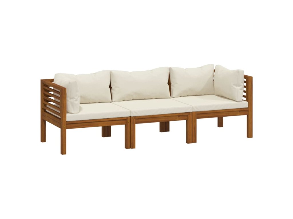 Multidom 3-miestna záhradná pohovka s krémovými vankúšmi akáciový masív