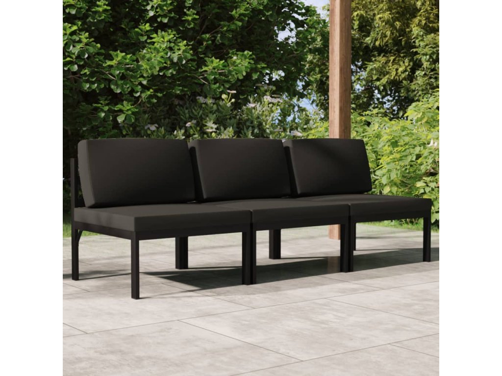 Multidom 3-miestna záhradná pohovka s vankúšmi antracitová hliník