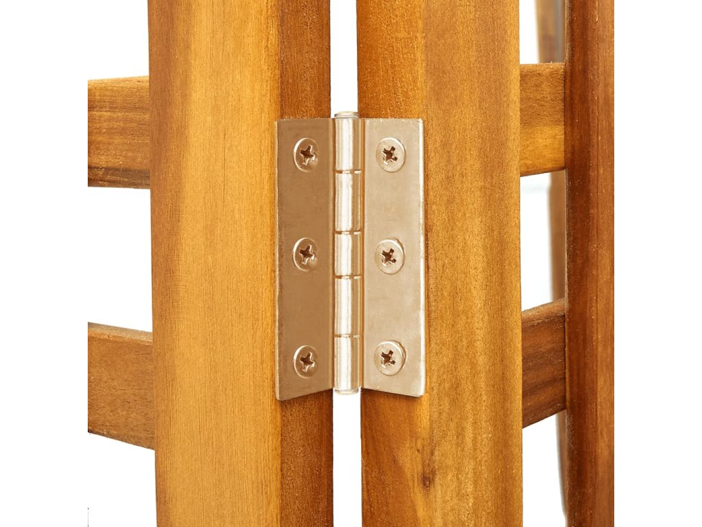 Paraván je vyrobený z masívneho akáciového dreva s olejovou úpravou, ktoré je odolné a pevné. Je tiež skvelý na oddelenie súkromného priestoru alebo na vytvorenie ďalšej miestnosti. Panelový paraván je možné ľahko zložiť, aby sa ušetrilo miesto, keď sa nepoužíva. Je vhodný na vnútorné aj vonkajšie použitie. Navyše sa dá ľahko čistiť aj vlhkou handričkou.