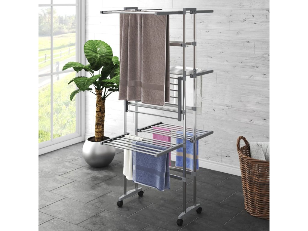 Multidom 3-poschodový sušič bielizne s kolieskami strieborný 60x70x129cm