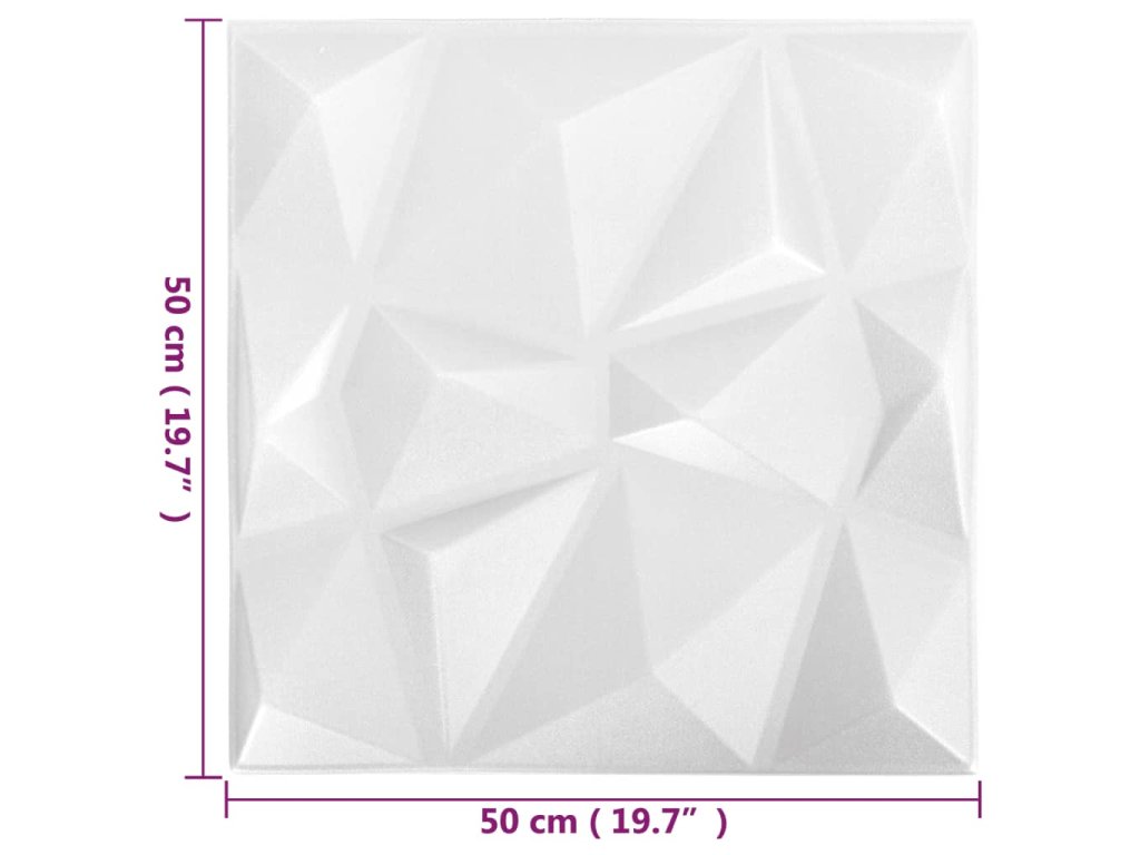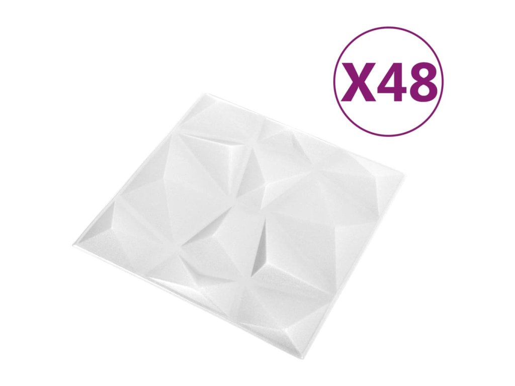 Multidom 3D nástenné panely 48 ks 50x50 cm, diamantové, biele 12 m²