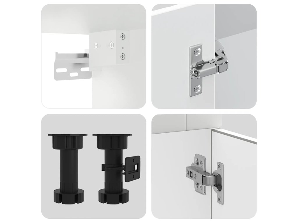 - Nastaviteľné nožičky: Spodné skrinky majú nastaviteľné nožičky, ktoré možno výškovo nastaviť tak, aby vyhovovali rozloženiu vašej kuchyne.