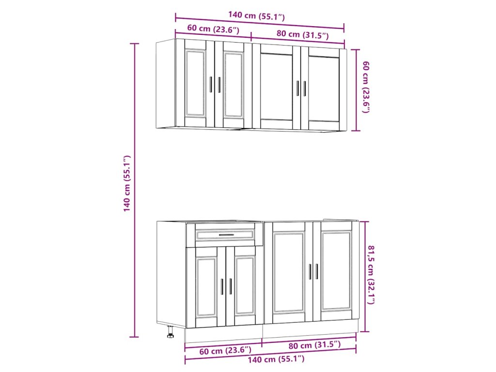 Táto 4-dielna kuchynská súprava skriniek s elegantným dizajnom vám umožní optimálne využiť priestory v kuchyni, pretože vám poskytne množstvo miesta na odkladanie osobných vecí!