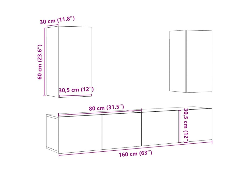 Multidom 4-dielna súprava nástennej TV skrinky, kompozitné drevo