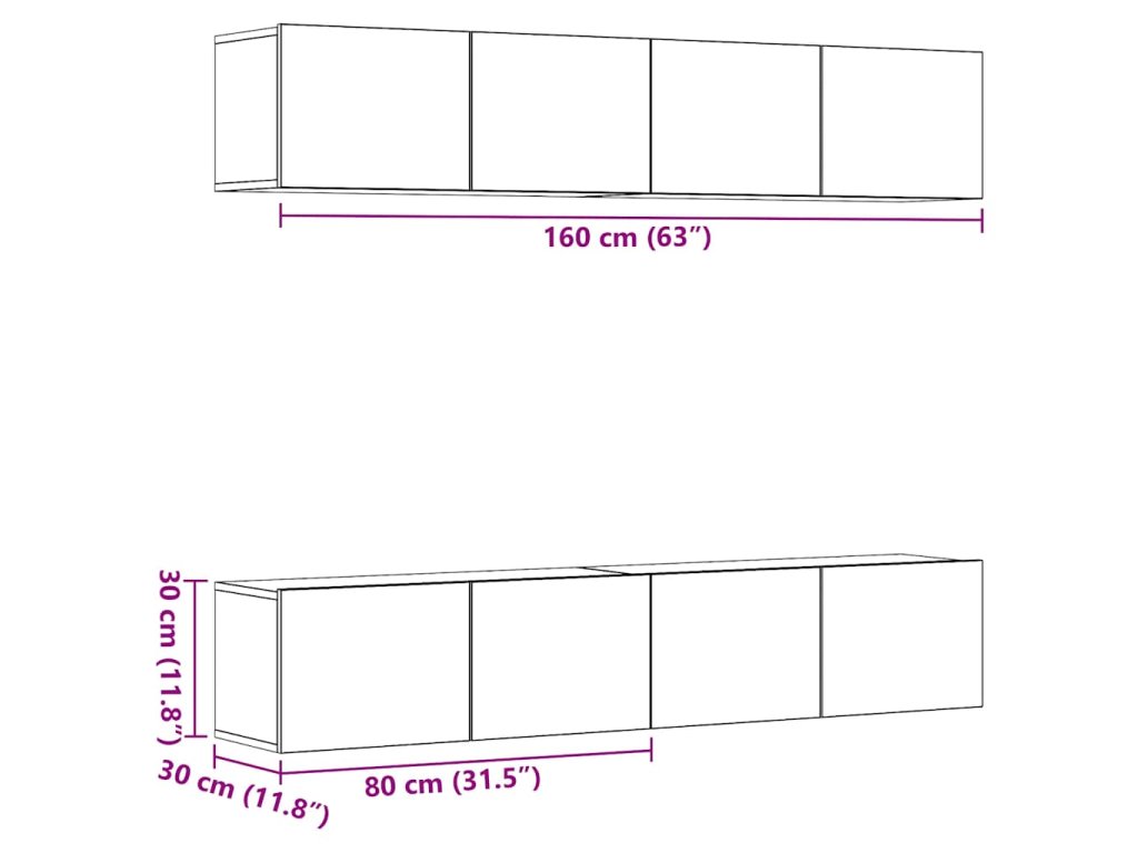 - Rozmery nástennej TV skrinky: 80 x 30 x 30 cm (Š x H x V)