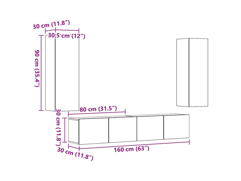 - Rozmery nástennej TV skrinky (L): 30,5 x 30 x 90 cm (Š x H x V)