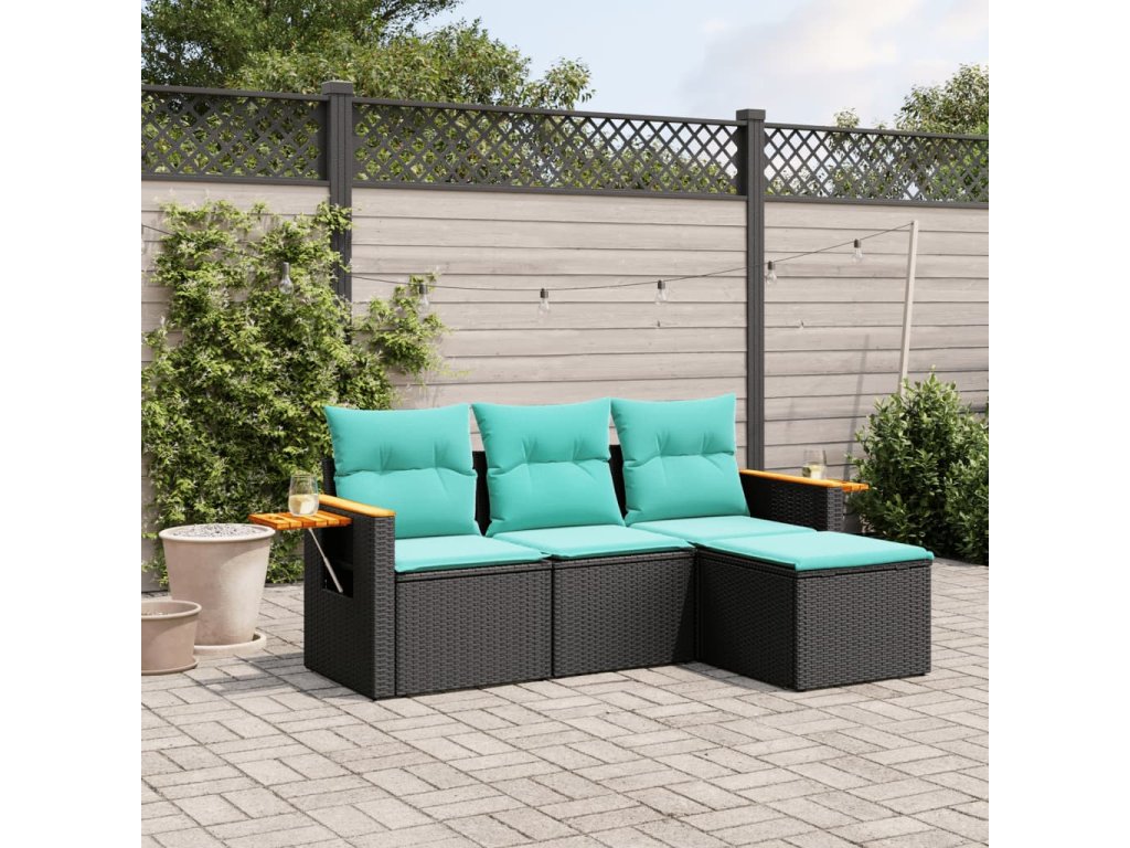 Multidom 4-dielna záhradná sedacia súprava s podložkami čierna polyratan