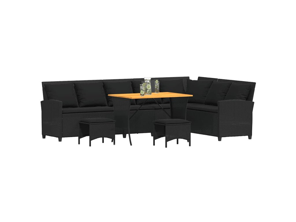 Multidom 4-dielna záhradná sedacia súprava s podložkami tvare L čierna