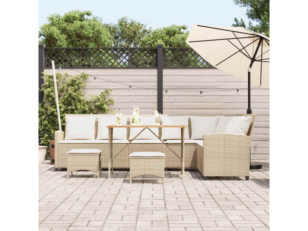 - Materiál: PE (polyetylén) ratan, oceľ s práškovou povrchovou úpravou, akáciový masív s prírodným olejovým náterom