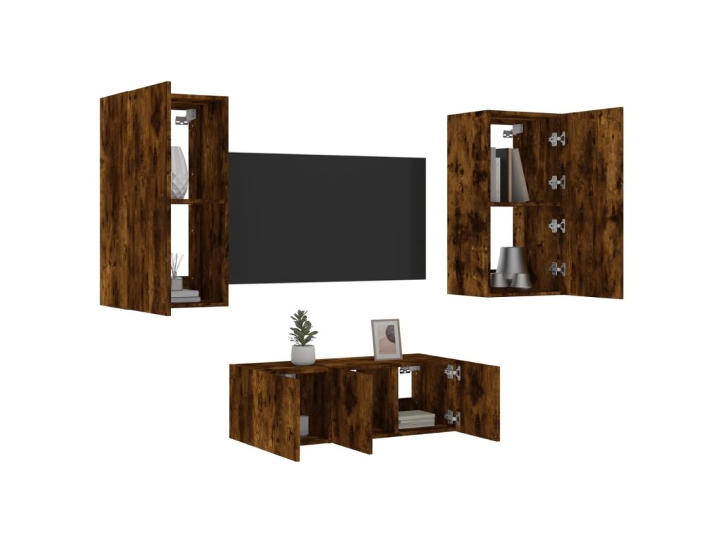 Multidom 4-dielne TV nástenné skrinky s LED dymový dub kompozitné drevo