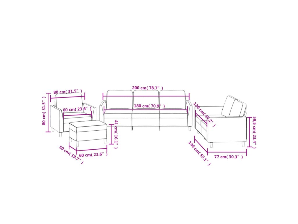- Celkové rozmery: 200 x 77 x 80 cm (Š x H x V)