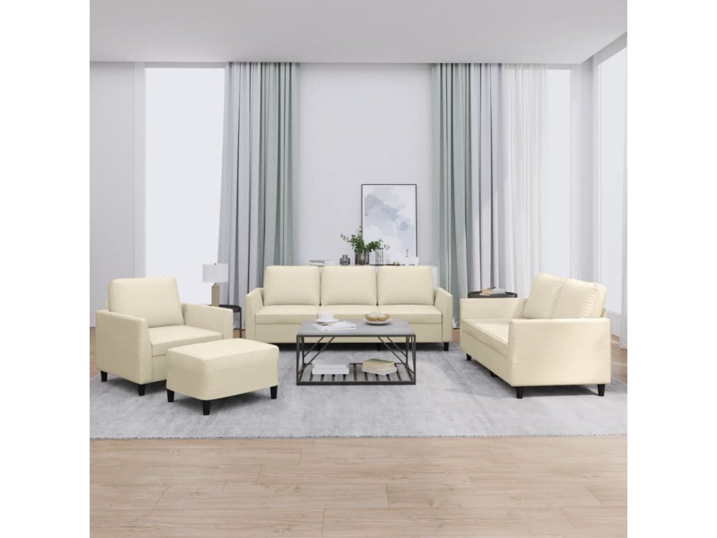 Multidom 4-miestna sedacia súprava s vankúšmi krémová umelá koža