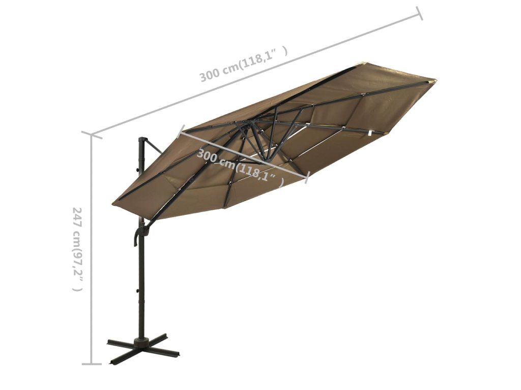 Multidom 4-stupňový záhradný slnečník, hliníková tyč, sivohnedý 3x3 m