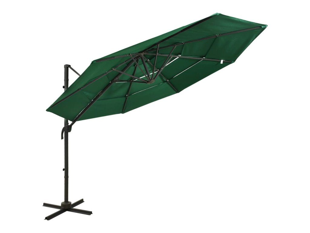 Multidom 4-stupňový záhradný slnečník, hliníková tyč, zelený 3x3 m
