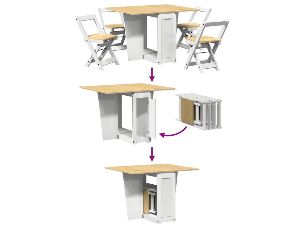 Multidom 5-diel. jedálenská súprava Corona skladacia biela borovica
