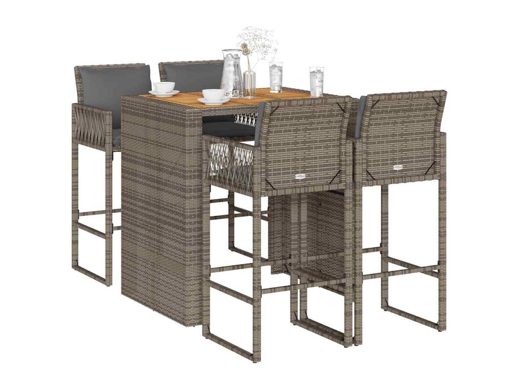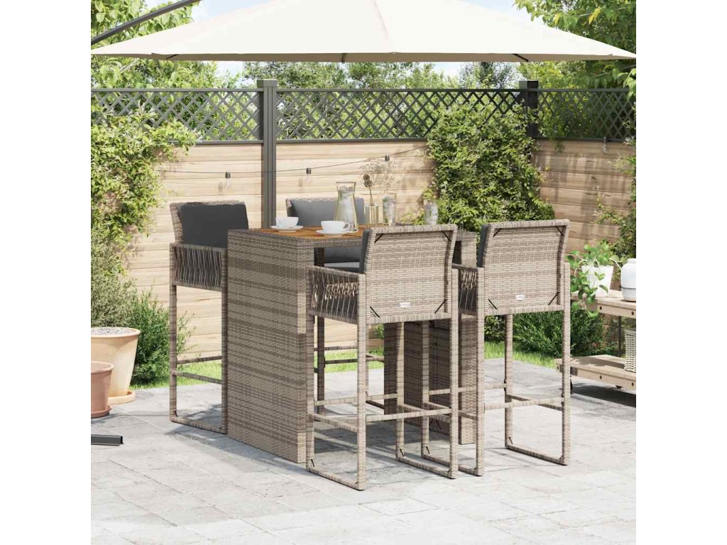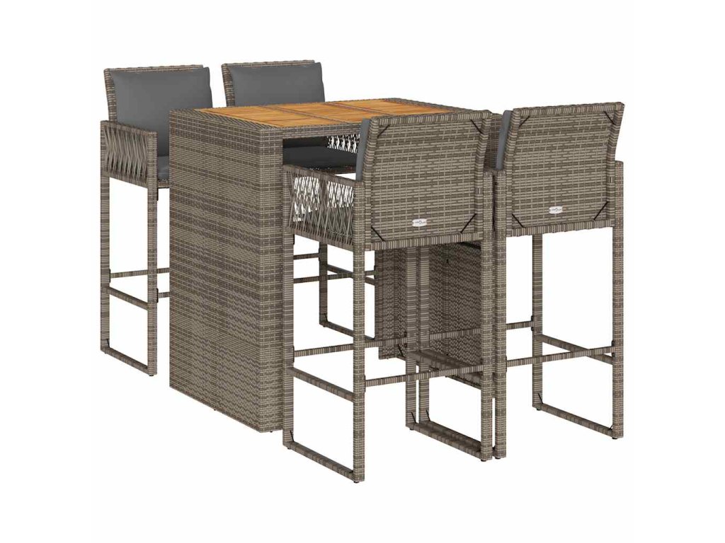 Multidom 5-dielna sada záhradných barov s vankúšmi sivá polyratanová