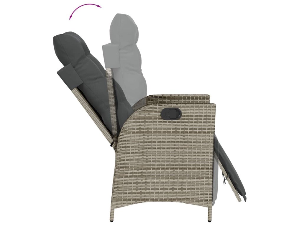- Nastaviteľné operadlo a podnožka: Toto záhradné sedadlo má rukoväť. Opierku chrbta a podnožku môžete nastaviť do ľubovoľnej polohy zatiahnutím za rukoväť a rýchlo ich vrátiť do pôvodnej polohy.