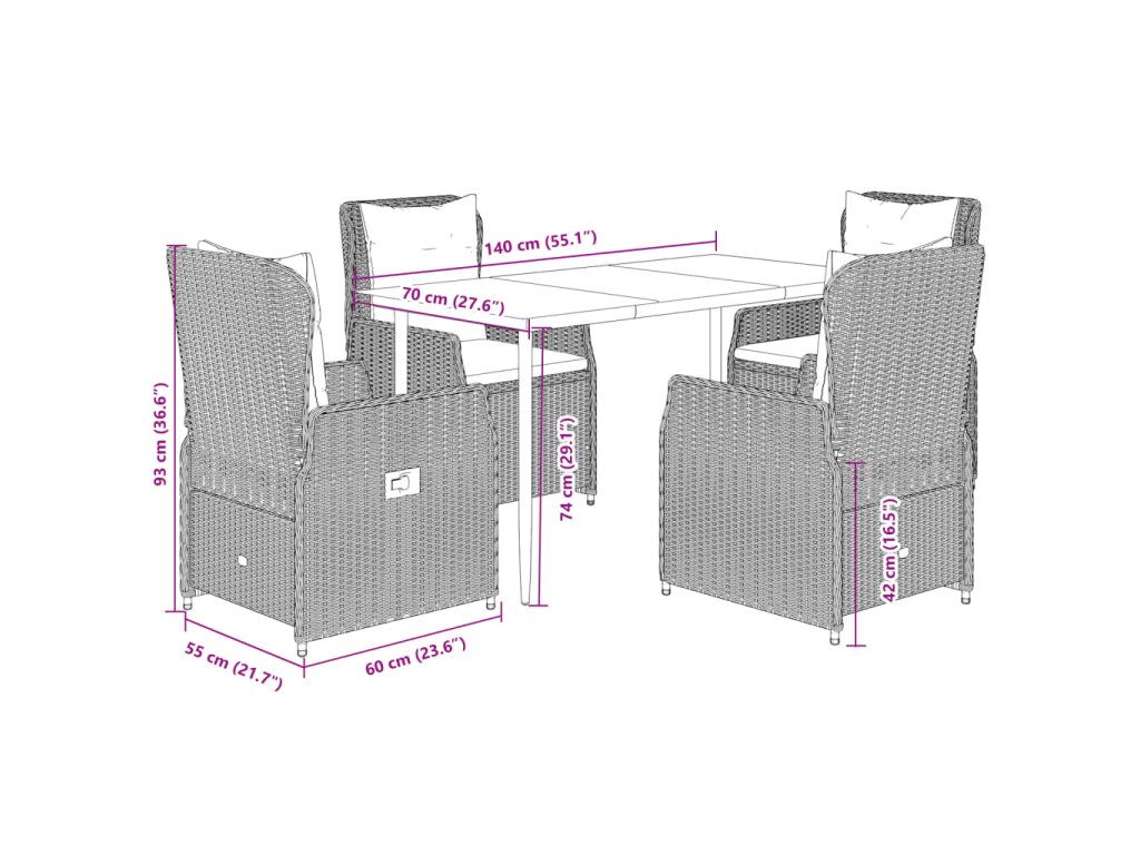 Multidom 5-dielna záhradná jedálenská súprava a vankúše béžová polyratan