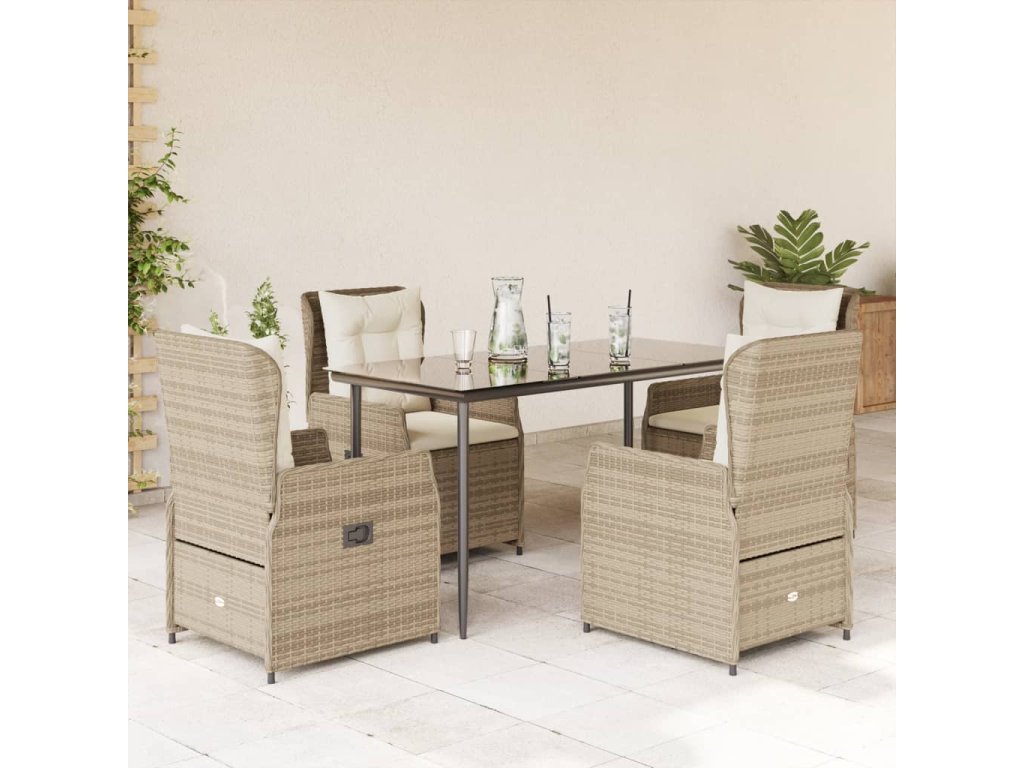 Multidom 5-dielna záhradná jedálenská súprava a vankúše béžová polyratan