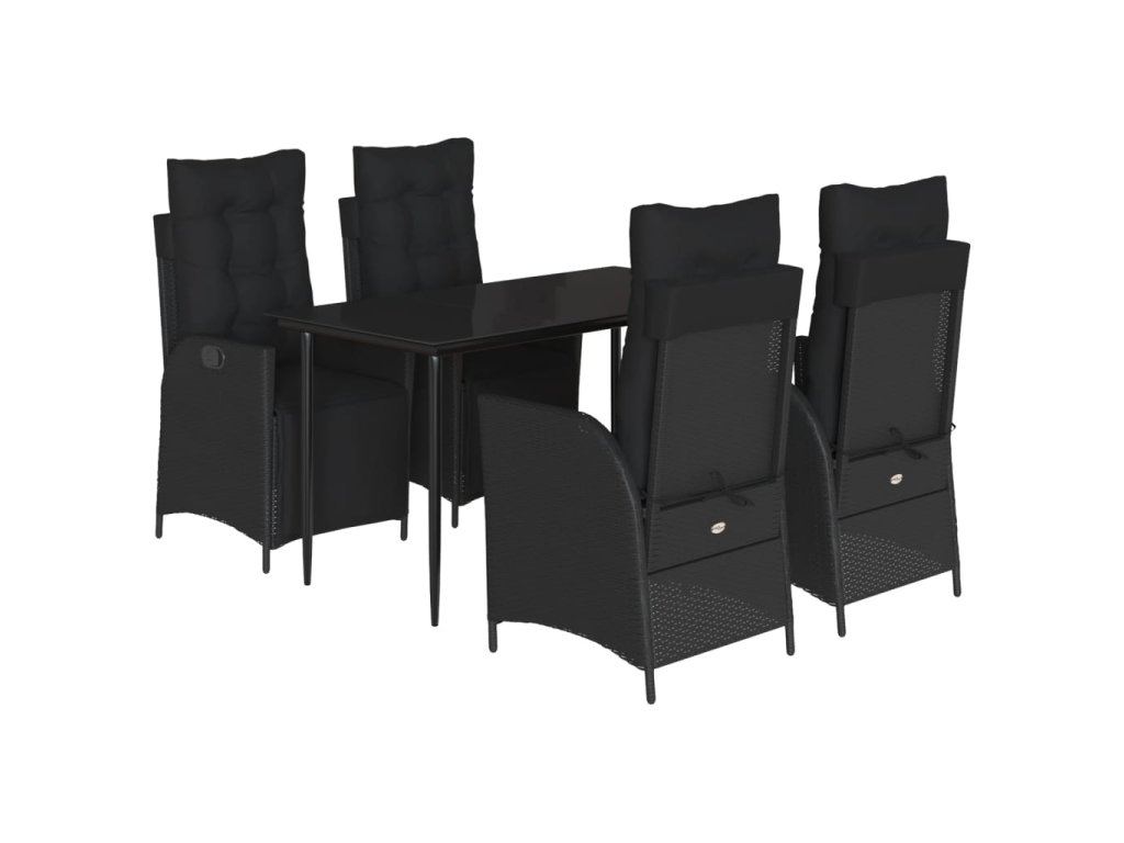 Multidom 5-dielna záhradná jedálenská súprava a vankúše čierna polyratan