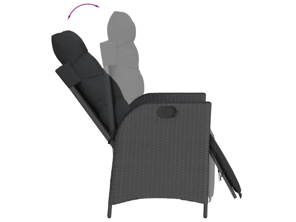 - Nastaviteľné operadlo a podnožka: Toto záhradné sedadlo má rukoväť. Opierku chrbta a podnožku môžete nastaviť do ľubovoľnej polohy zatiahnutím za rukoväť a rýchlo ich vrátiť do pôvodnej polohy.