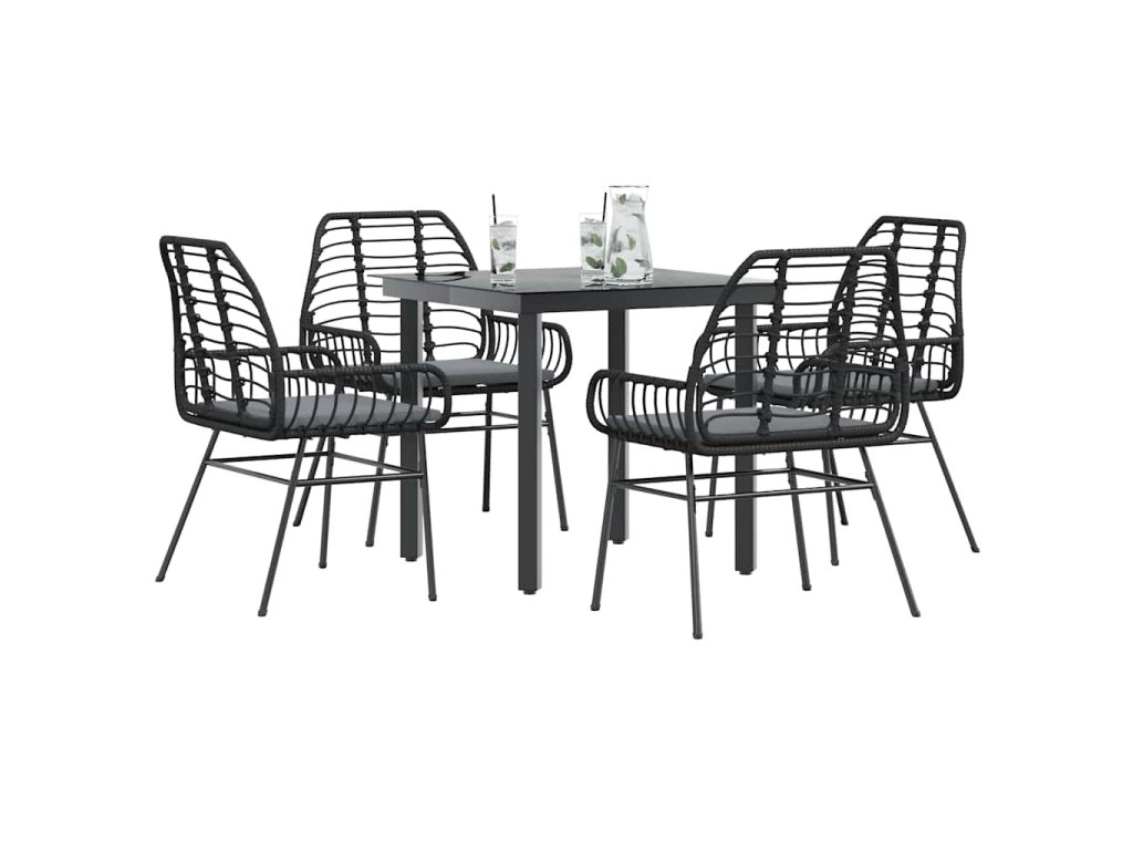 Multidom 5-dielna záhradná jedálenská súprava+podložky, čierna polyratan