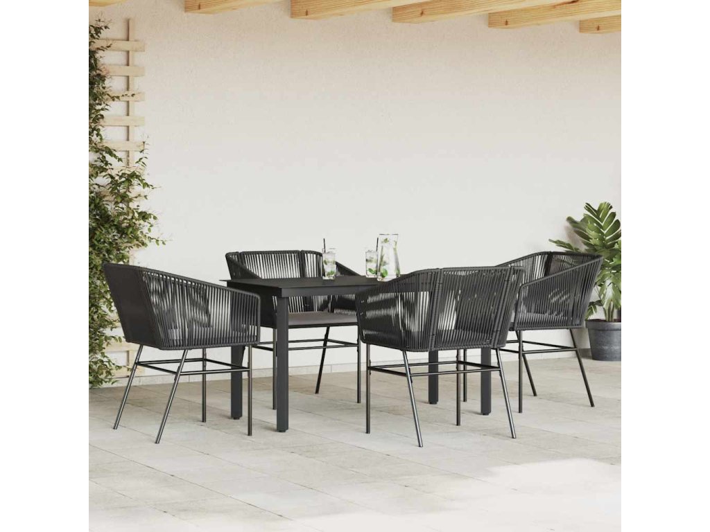 Multidom 5-dielna záhradná jedálenská súprava+podložky, čierna polyratan