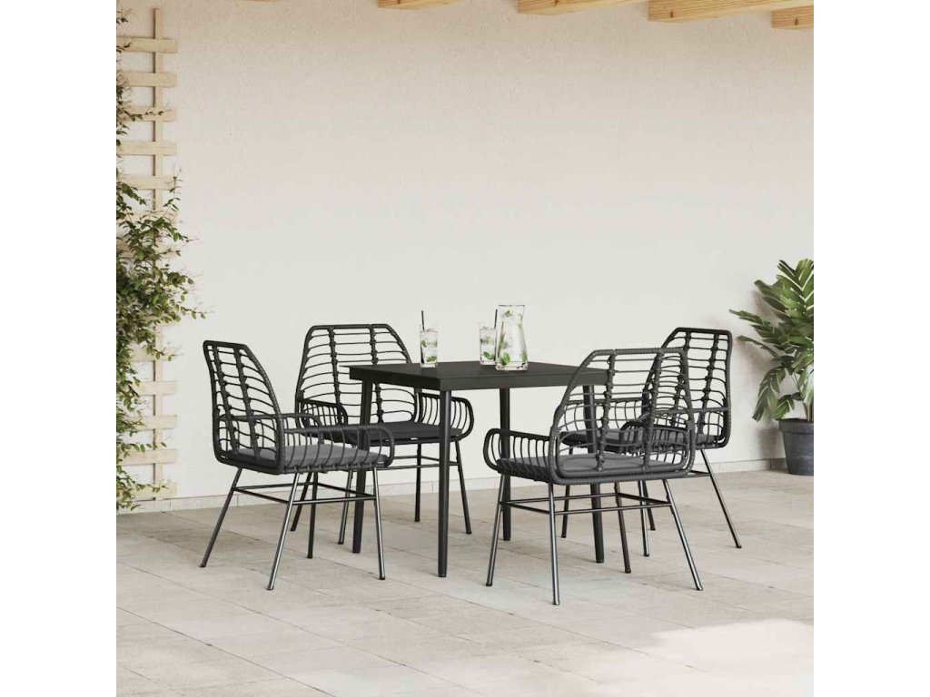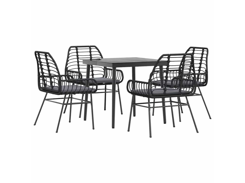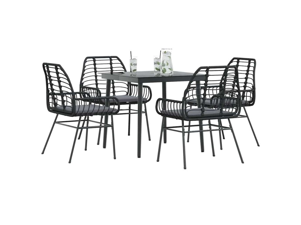 Multidom 5-dielna záhradná jedálenská súprava+podložky, čierna polyratan