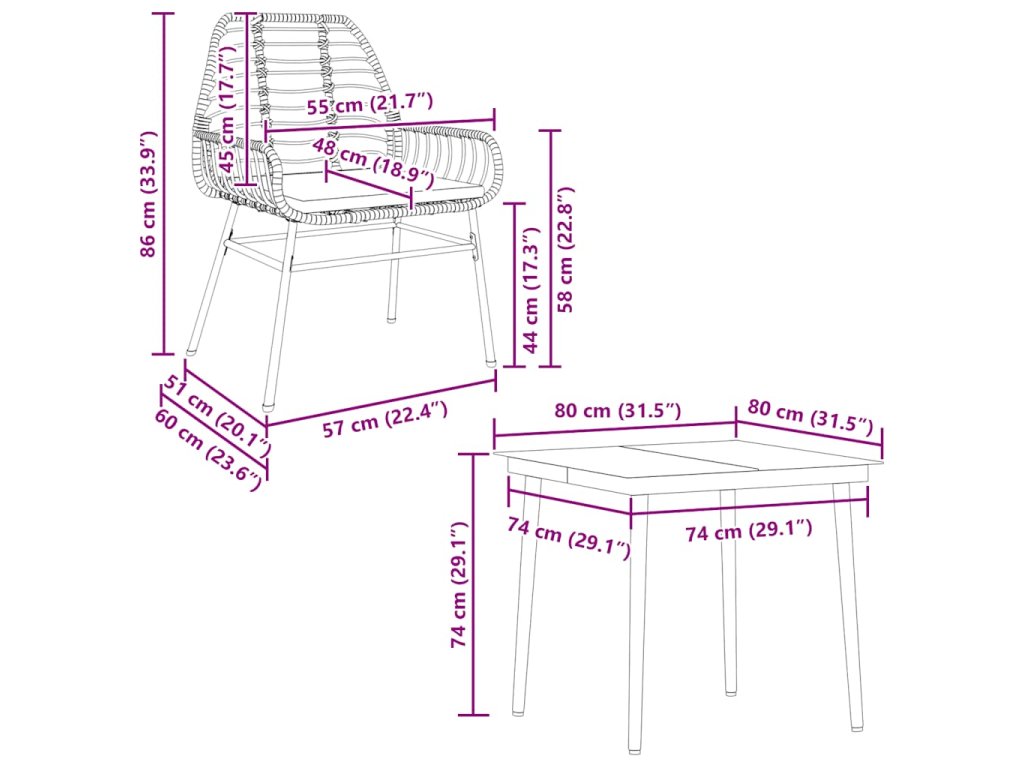 - Rozmery stola: 80 x 80 x 74 cm (D x Š x V)