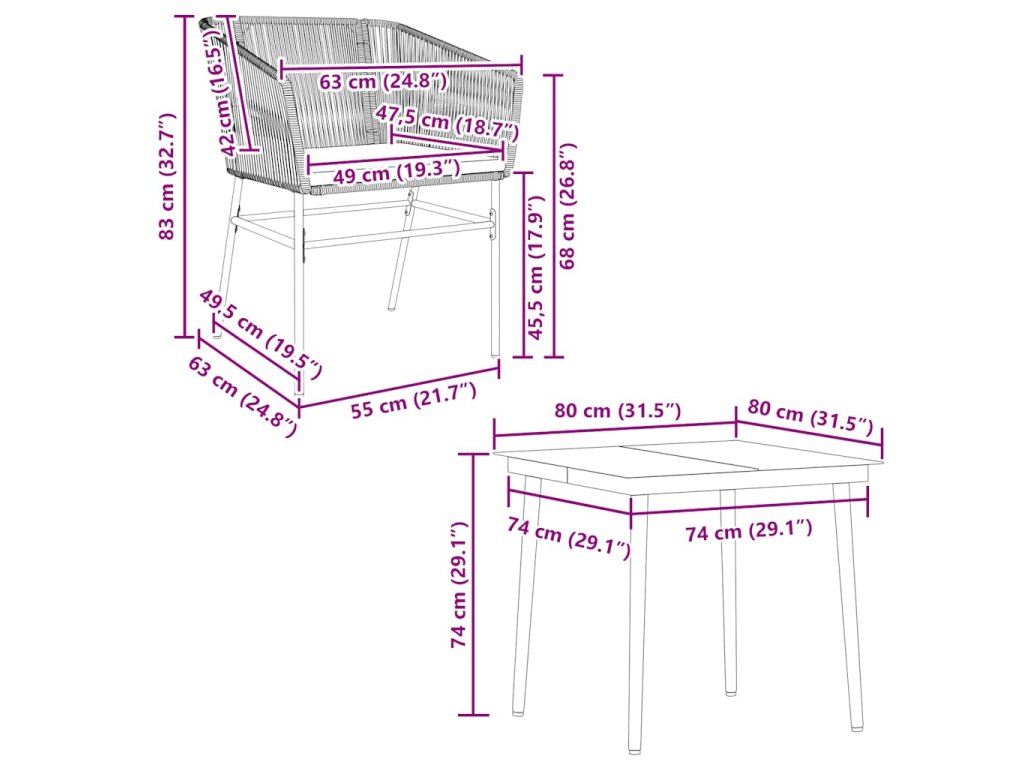 - Rozmery stola: 80 x 80 x 74 cm (D x Š x V)
