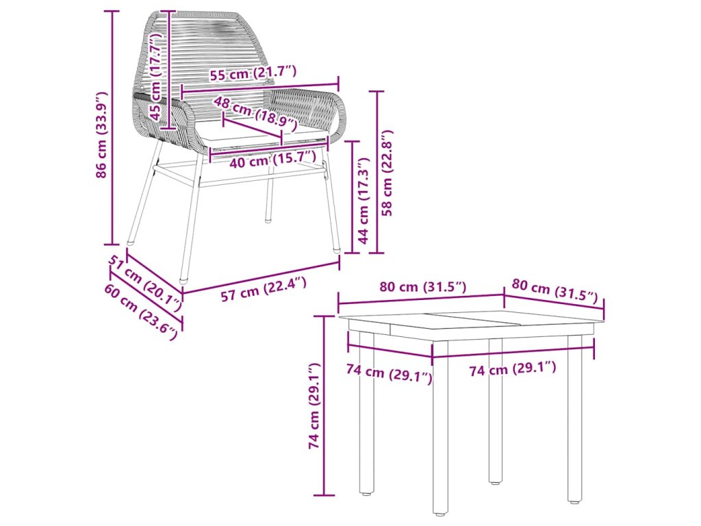 - Rozmery stola: 80 x 80 x 74 cm (D x Š x V)