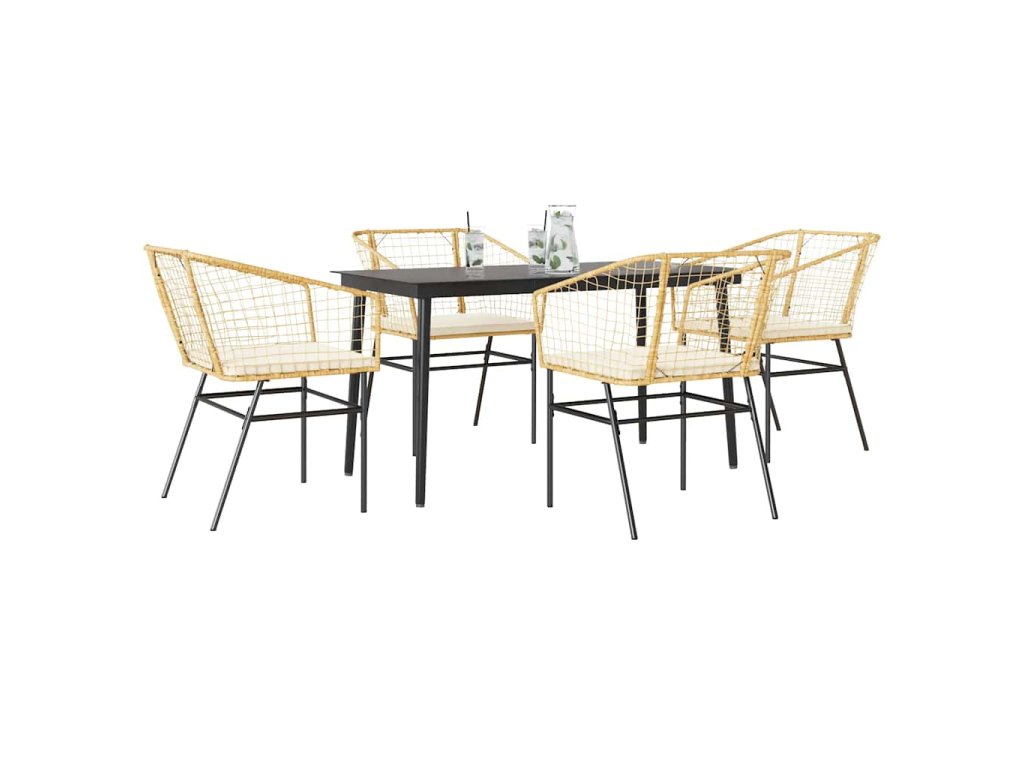 Multidom 5-dielna záhradná súprava a vankúše hnedá polyratan a sklo