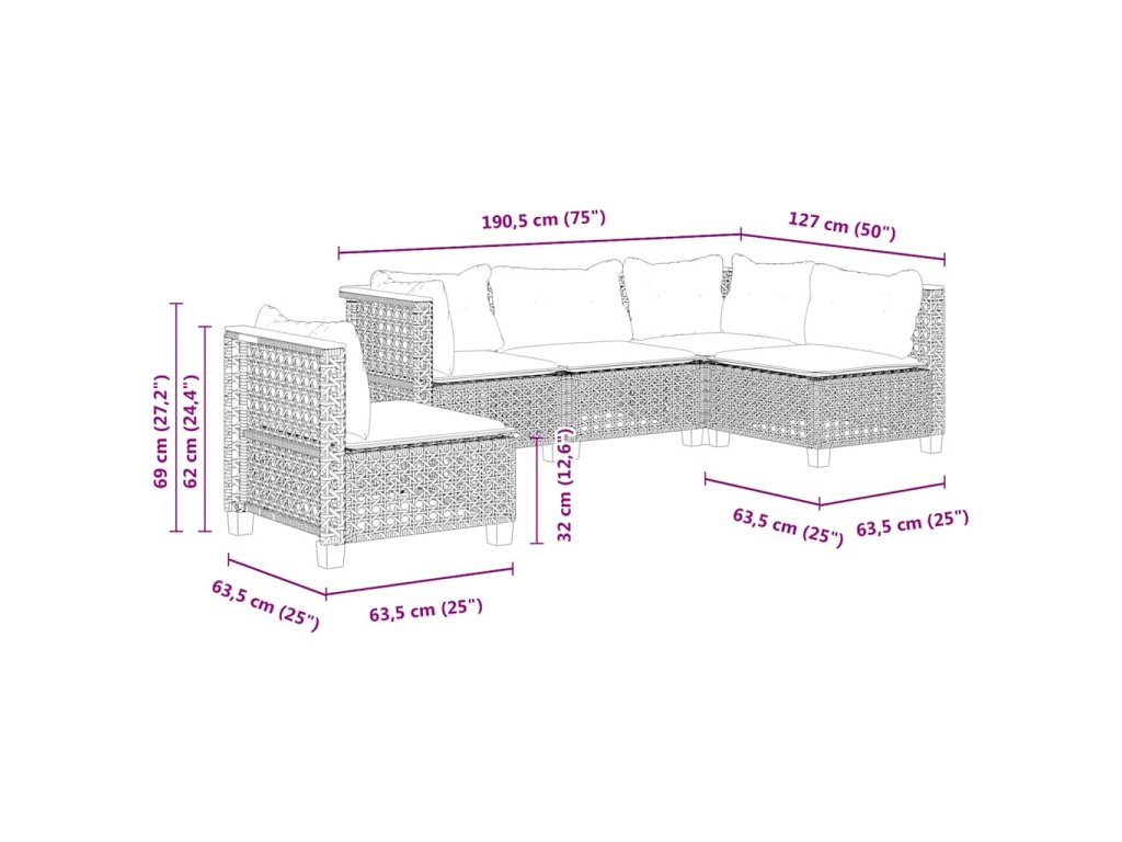 Multidom 5-dielna záhradná súprava pohoviek s vankúšmi béžová polyratan