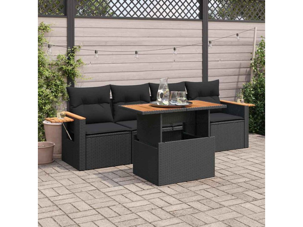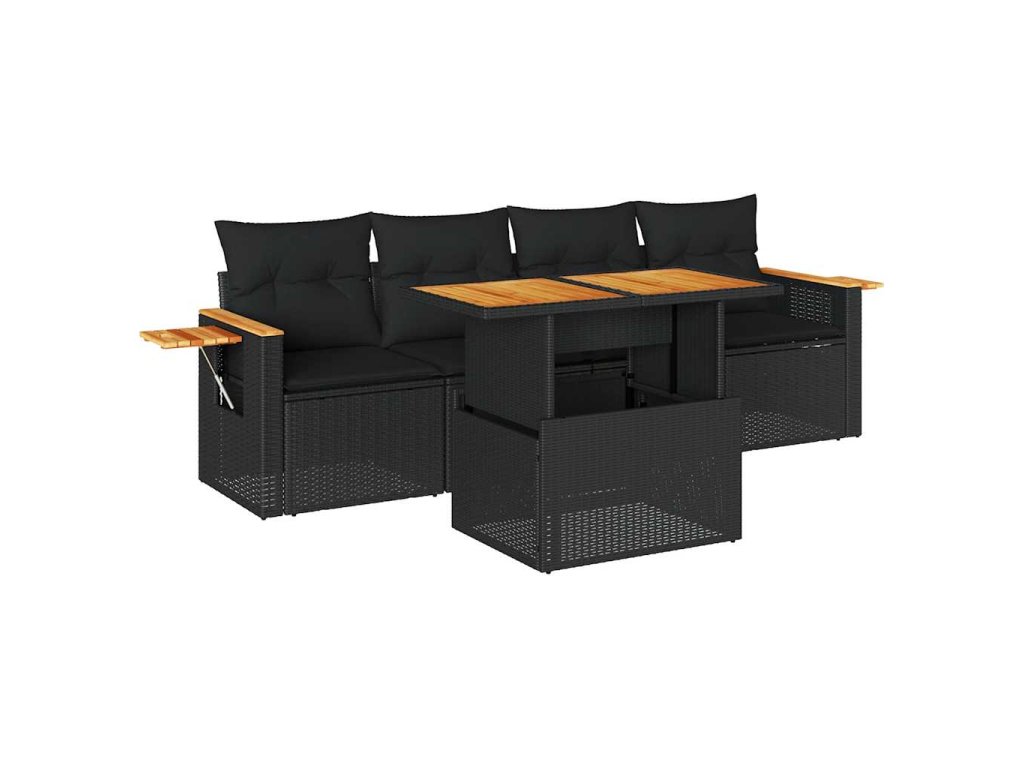 Multidom 5-dielna záhradná súprava pohoviek s vankúšmi čierna