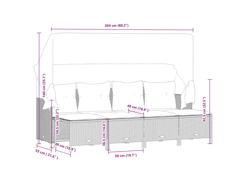 - Rozmery bez baldachýnu: 204 x 55 x 69,5 cm (Š x H x V)