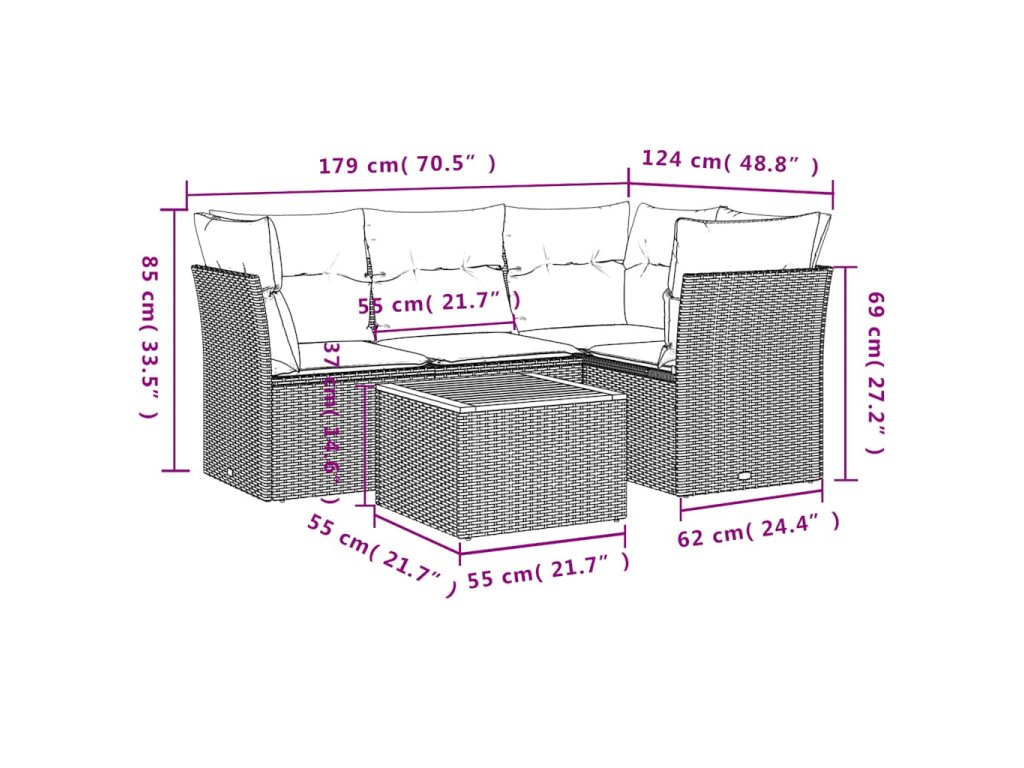 Multidom 5-dielna záhradná súprava pohoviek s vankúšmi sivá polyratanová