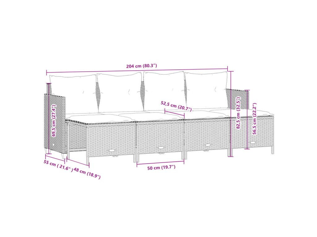 - Rozmery podsedáka (4-miestna pohovka): 200 x 52,5 x 3 cm (Š x H x V)