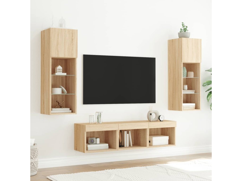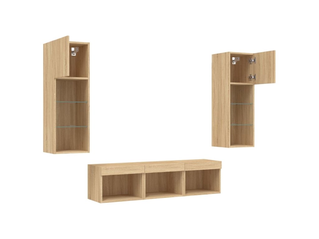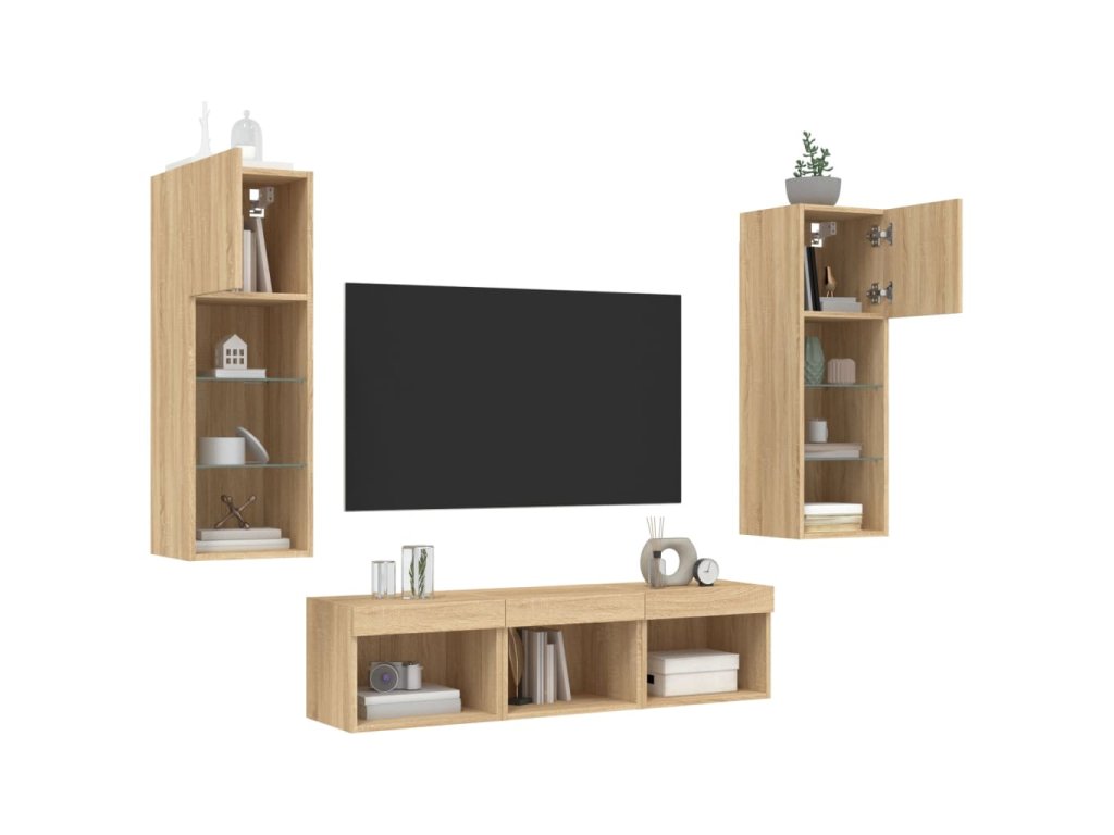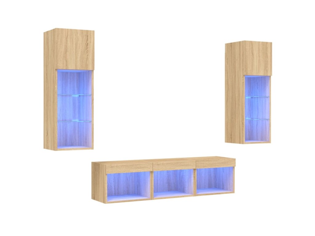 Multidom 5-dielne TV nástenné skrinky s LED dub sonoma kompozitné drevo