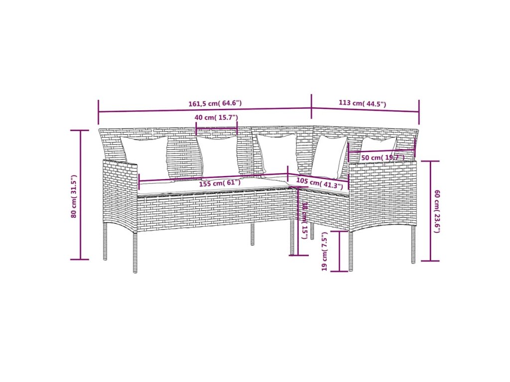 - Rozmery pohovky v tvare L: 161,5 x 113 x 80 cm (Š x H x V)