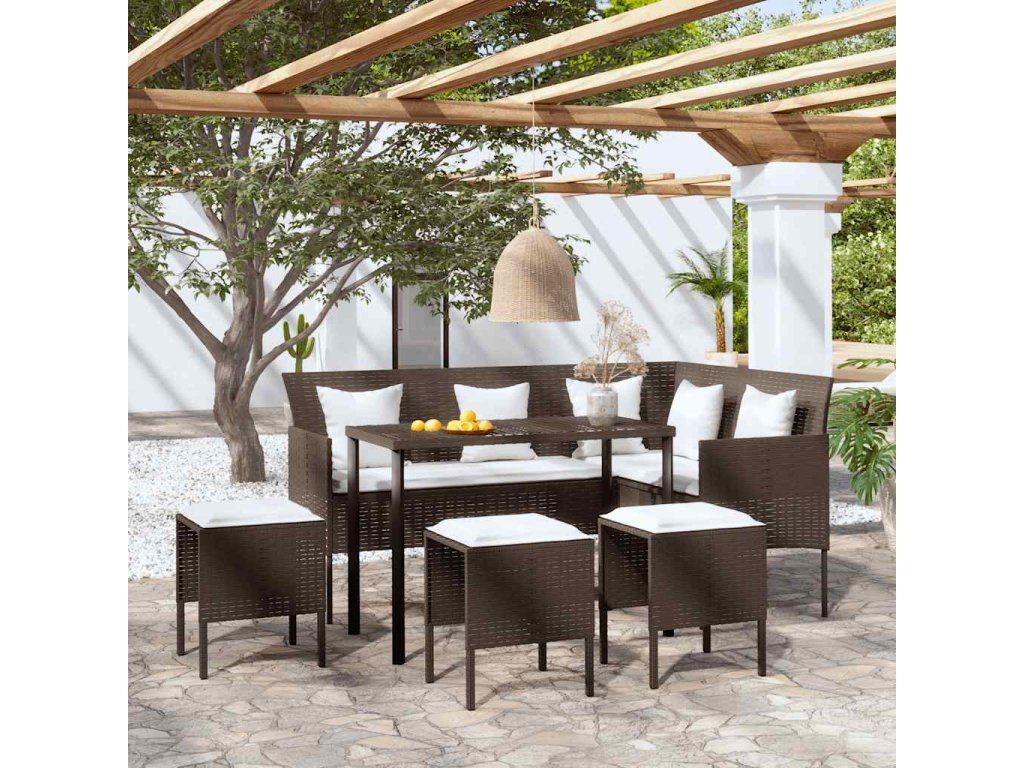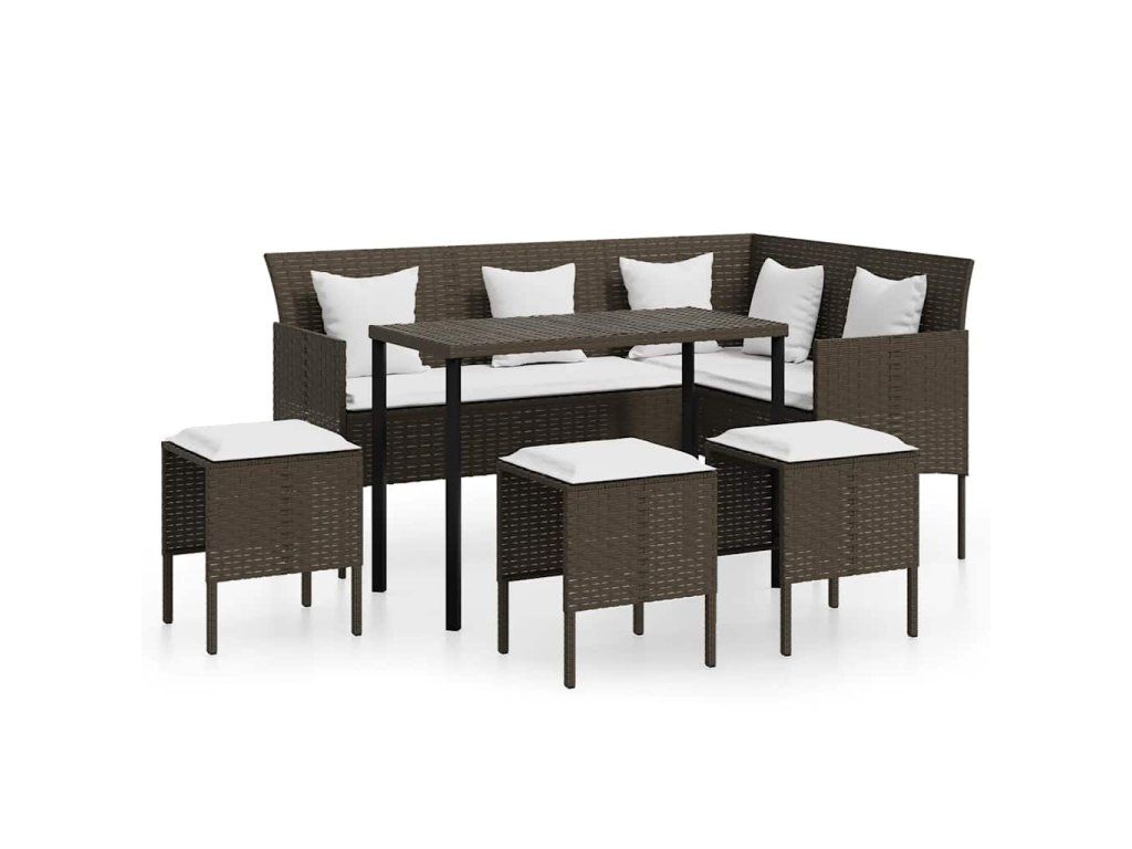 Multidom 5-dielny záhradný sedací set so sedákmi tvar L polyratan hnedý